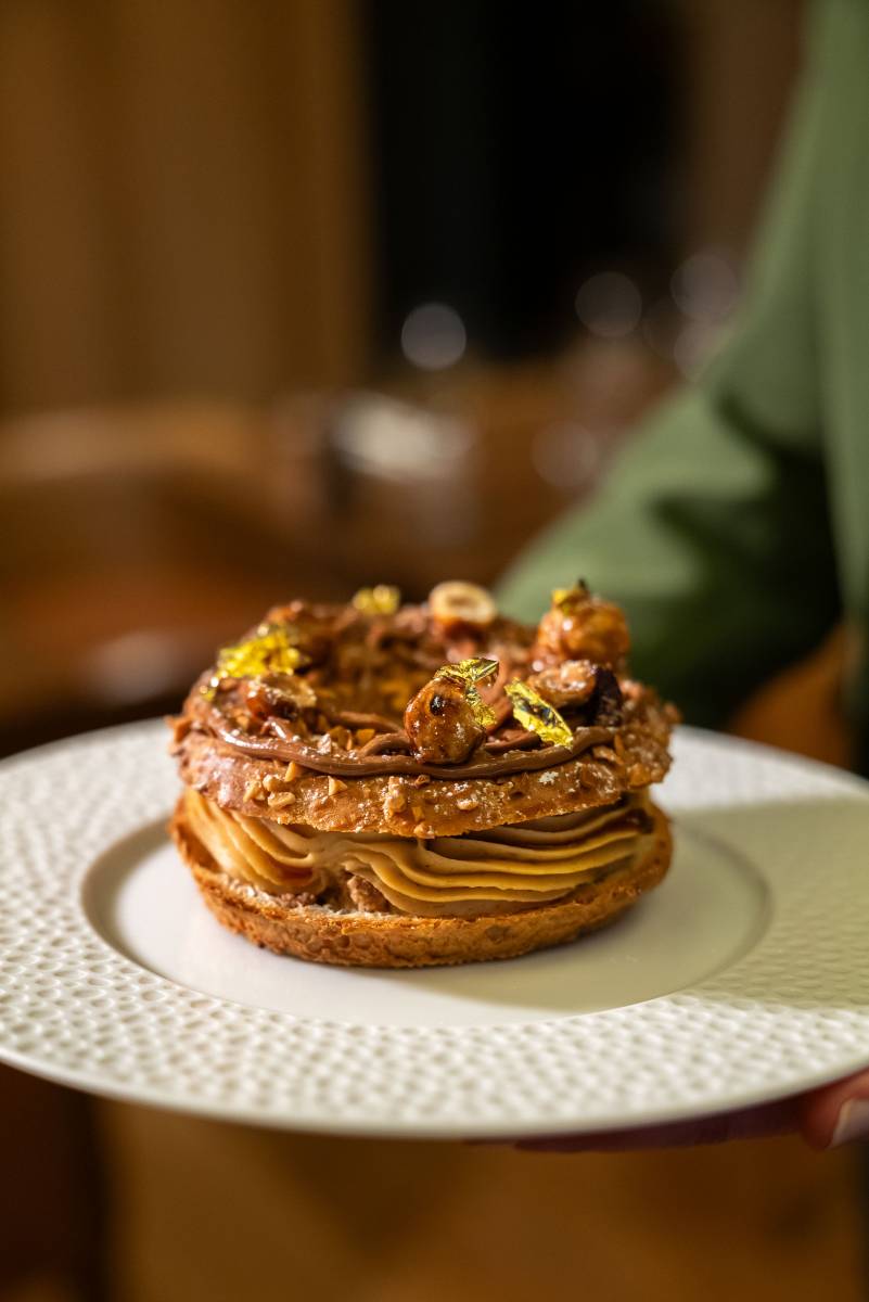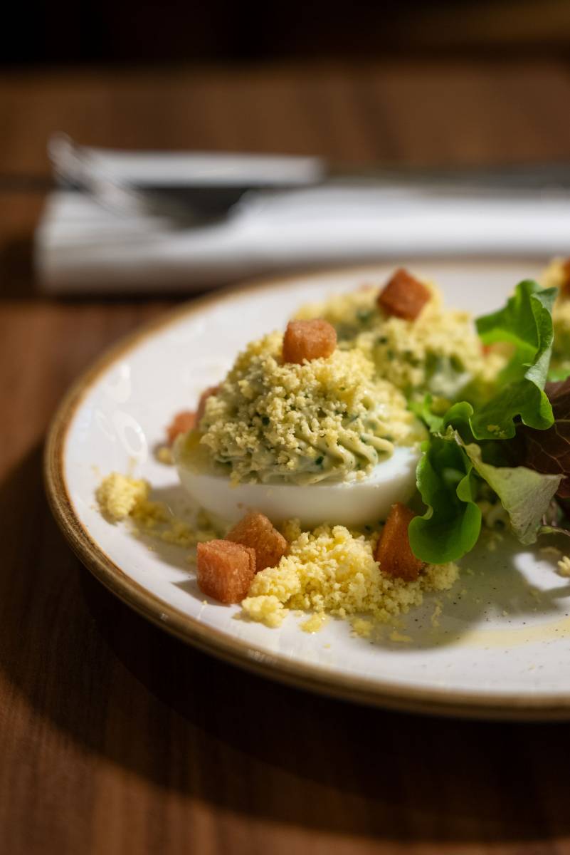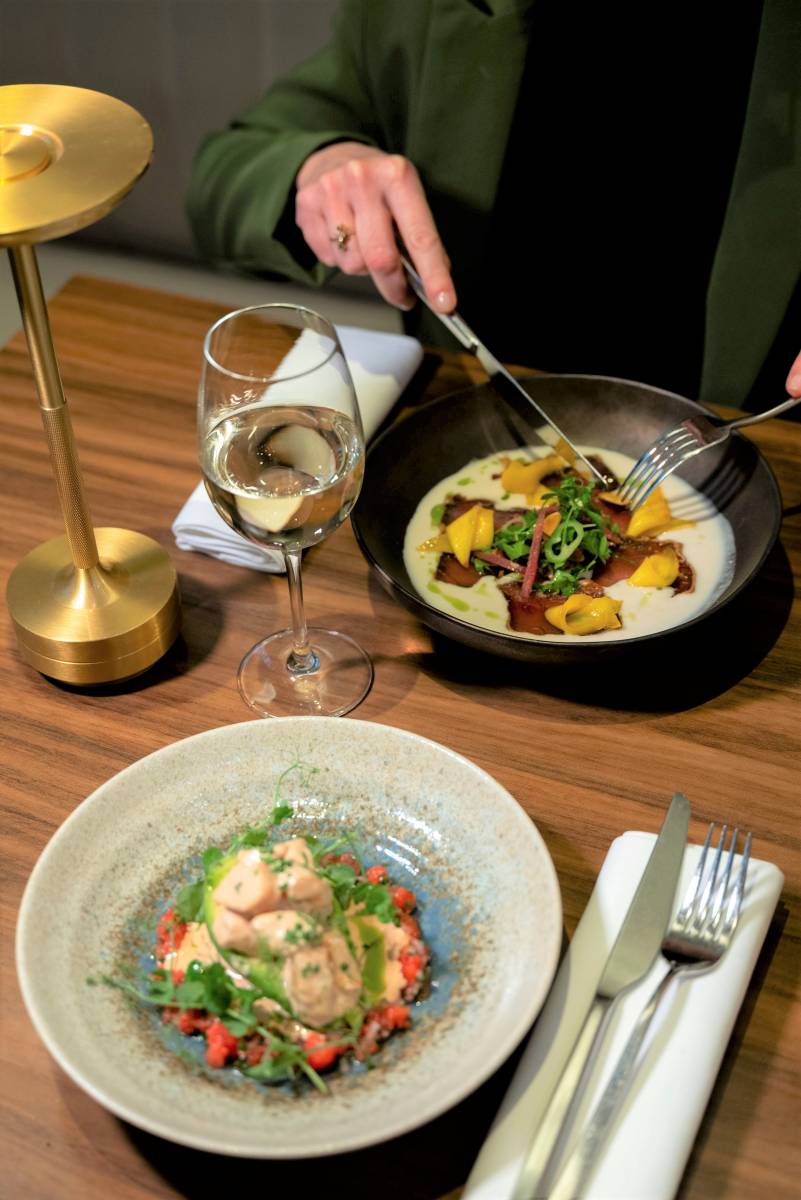 Oeufs mimosa, soupe à l’oignon, filet de bœuf au poivre Sarawak ou cochon Ibaïma au piment d’Espelette côtoient des assiettes marines tels le cabillaud façon grenobloise, les ravioles de langoustines et son coulis de crustacés, ou encore un croustillant fish and chips, sauce tartare.